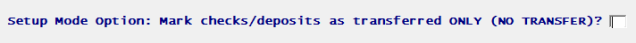 When you leave it unchecked (enter N), the software completely skips looking for untransferred checks and deposits with dates earlier than the last transfer date. If you did a transfer, then posted a check in A/P (for example), dated earlier than the last transfer date, then this check does not get transferred. In this case, you must check the box (enter Y) to ensure that such checks and deposits do get transferred.