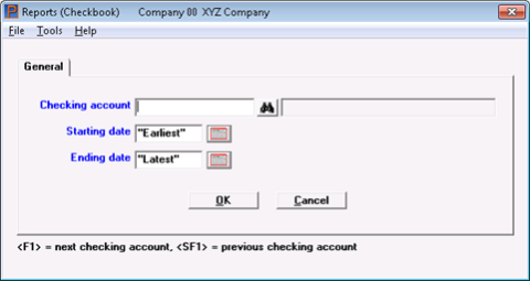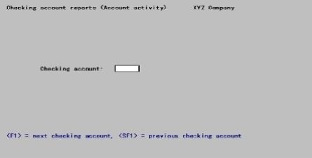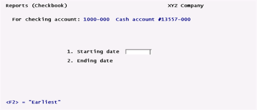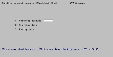 A screen displays for you to enter the checking account for which you want to print the report. You can also use the option: