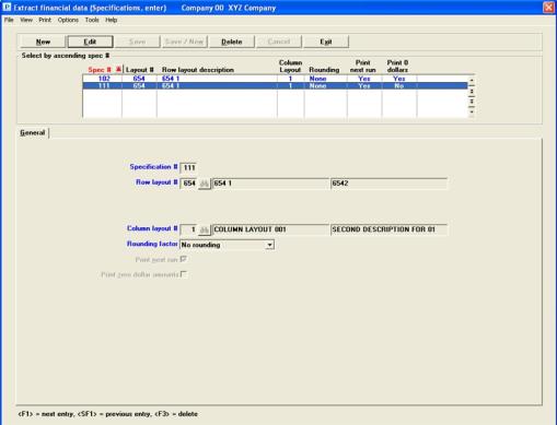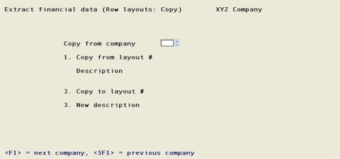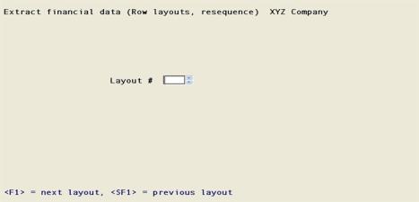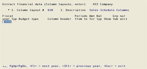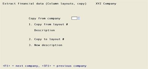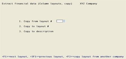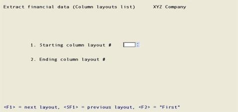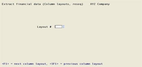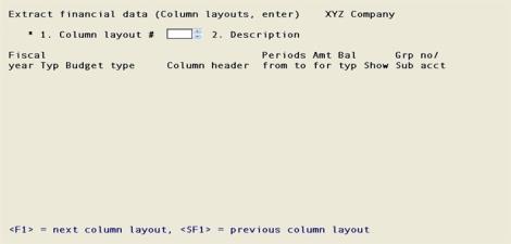Column layouts, enter from the Extract financial data menu. The following screen appears: