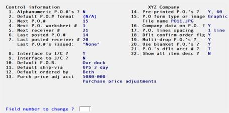 If you answered Y to Field #1, Use alphanumeric P.O.#’ s?, this field displays as (Not applicable).