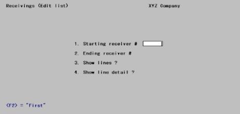 Make any needed changes. Upon pressing <Enter> with this field blank, the Receivings Edit List prints after selecting a printer.