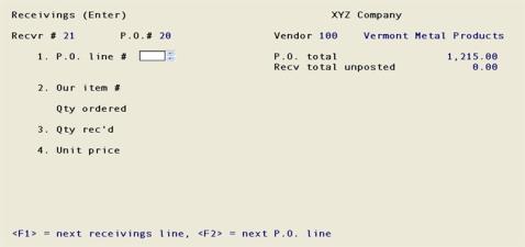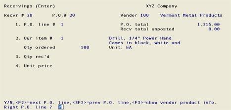 If this is an existing line item, you may press <F3> to delete this receiving line.