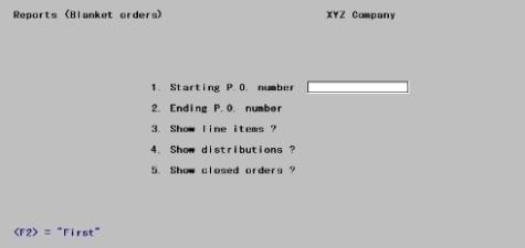 Answer N to show only open blanket orders. This shortens the report and allows you to concentrate on the purchase orders for which you expect to receive items.