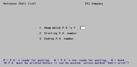 Make any needed changes. Upon pressing <Enter> with this field blank, the Releases Edit List will print.