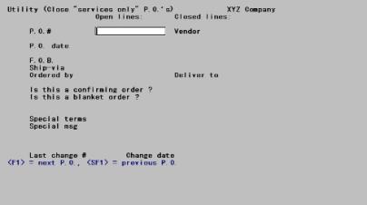 Make any needed changes. Upon pressing <Enter> with this field blank, selected purchase orders will be purged and the Purchase Order Purge Report will print if you answered Y to Print purge report.