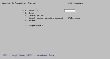 This is the Form ID that uniquely identifies, along with the Type, each form layout. You may enter an ID that is not on file to create a new form or enter the ID of a layout that is already on file to modify or delete the layout.