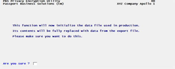 Running this utility will alter the fields in one of two ways. It will either decrypt the data if already encrypted or encrypt the data if not yet encrypted. Running this utility will also change the Control information Encrypt data files field, letting you know which was run last and how it is set now.
