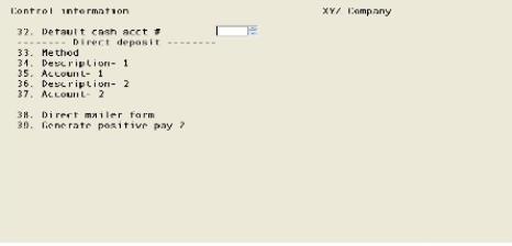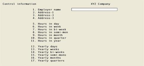 You use the Control information selection to set up the Payroll module for your business requirements. The information you enter here will control various operations throughout this module.