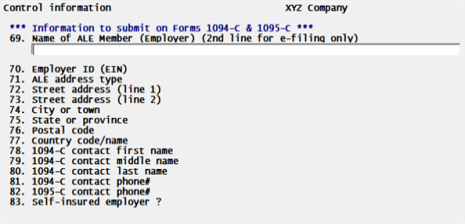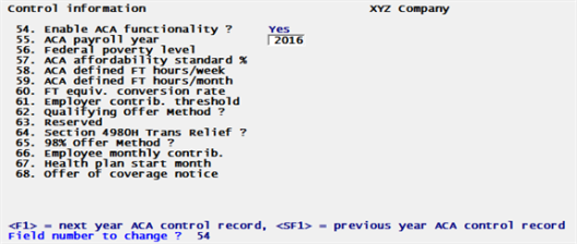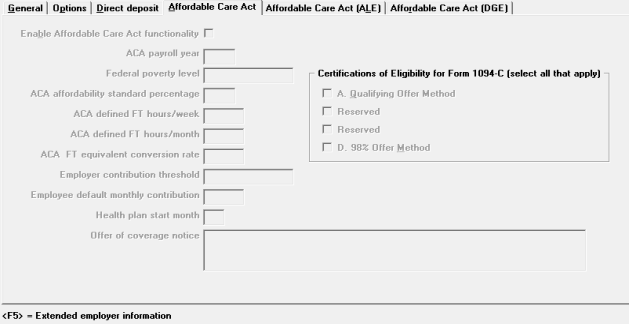 The control fields for Affordable Care Act determine how the ACA information is tracked and reported.