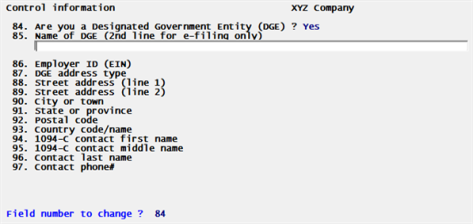 Enter the name of the DGE. It prints in box 9 of the 1094-C form and is written to the magnetic media E-file.
