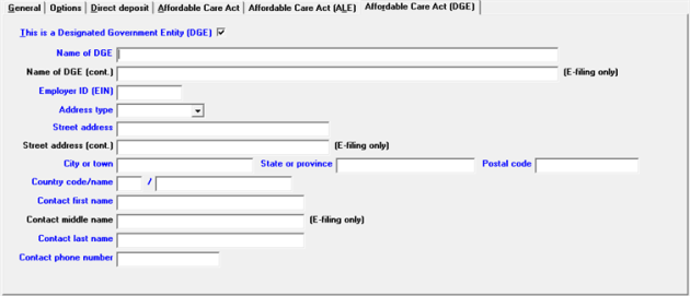 Enter the additional address information of the DGE. This address will only be generated in the magnetic media E-file. It will not print on the 1094-C form.
