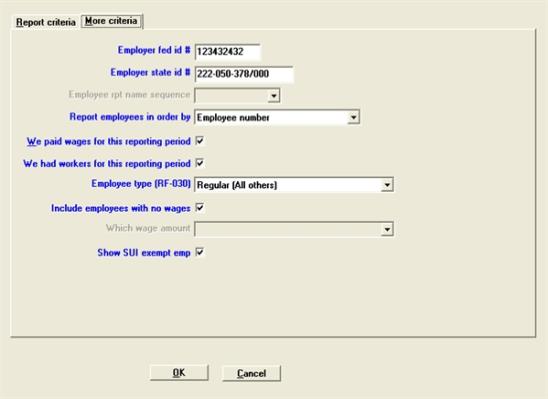 Check the box or enter Y if you want to print items for employees exempt from state unemployment insurance payments.
