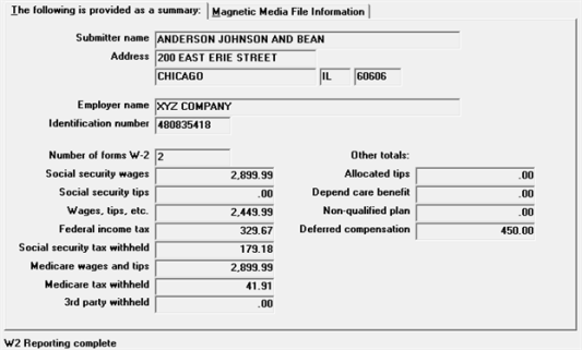 A W-3 form may also be printed. If you prefer to enter it manually the information for the W-3 is provided on the last screen.