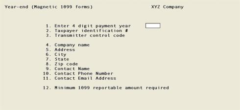Select Magnetic 1099 forms from the Year-end menu of the Payroll menu.
