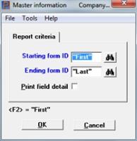Enter the range of form IDs for which to print the list. Follow the screen instructions.